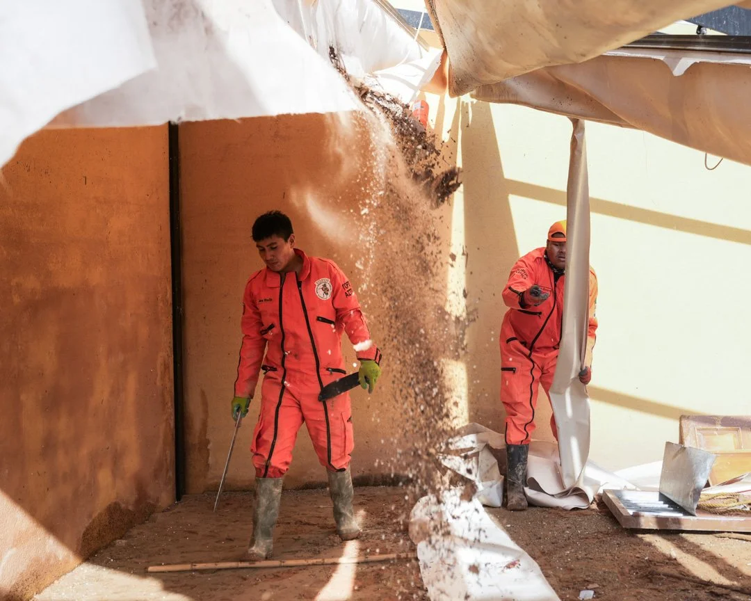 Los Topos son una organización compuesta por voluntarios especializados en rescate y primer auxilio que opera en todo el mundo. Poco antes del comienzo de las operaciones de reacondicionamiento del Barranco del Poyo entre Paiporta e Picaña se encontraban en esta ultima localidad prestando sus servicios.